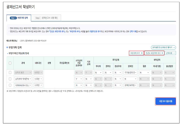 - 부양가족 공제 확인 후 누락된 가족 추가 등록